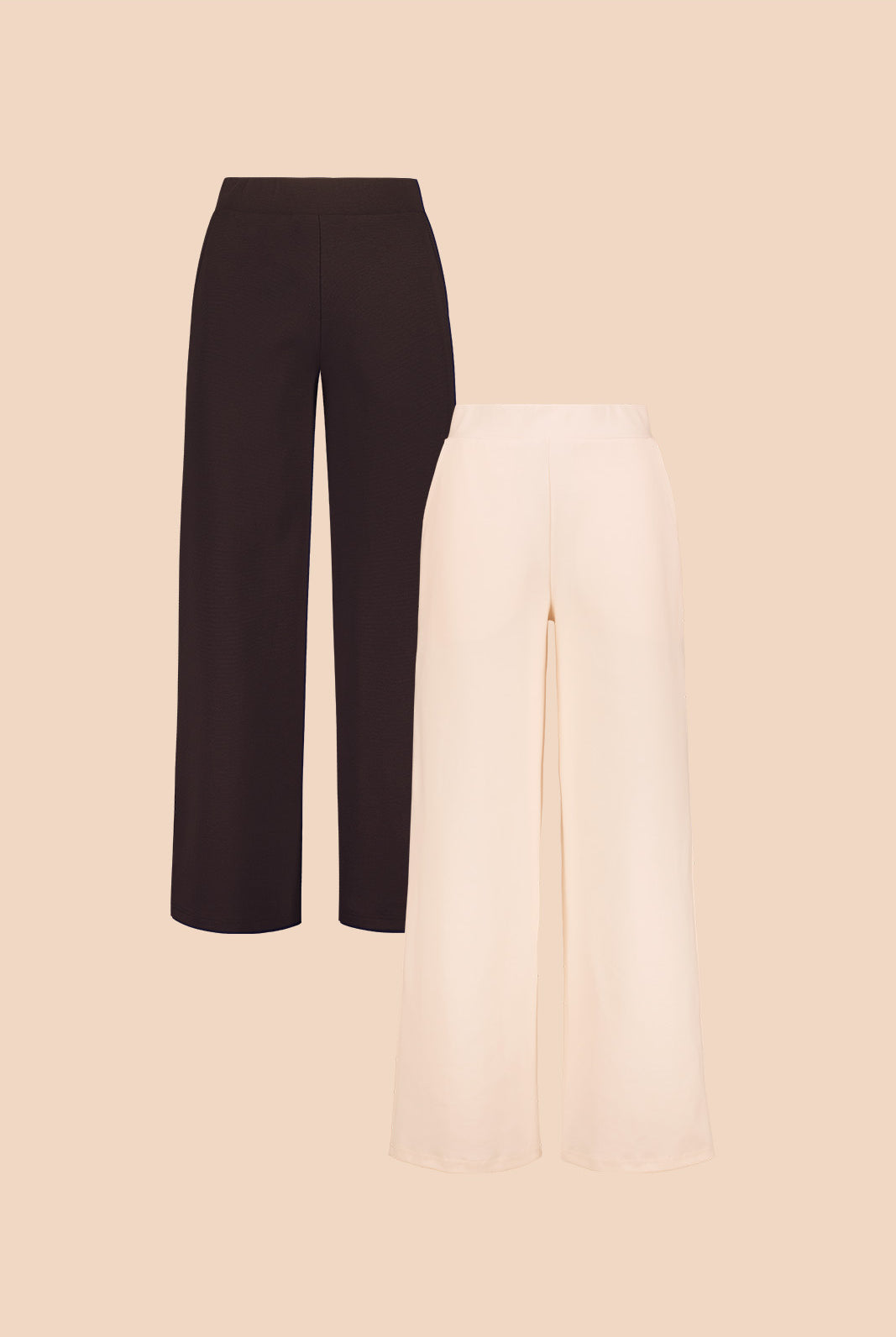 When you want neat pants that don't compromise on comfort, Comfy Slacks pants are a sure choice. The pants, made of sturdy and flexible Ponte roma interlock knit, follow the spirit of straight pants, but feel wonderfully soft when worn. The pants have a wide elastic waist (5 cm high) and front pockets. Form pleats at the back, which guarantee a good fit. The side seams have denim stitching, which gives the pants an extra sharp feel. The color is classic black.