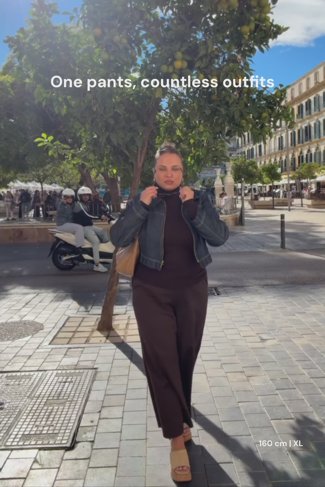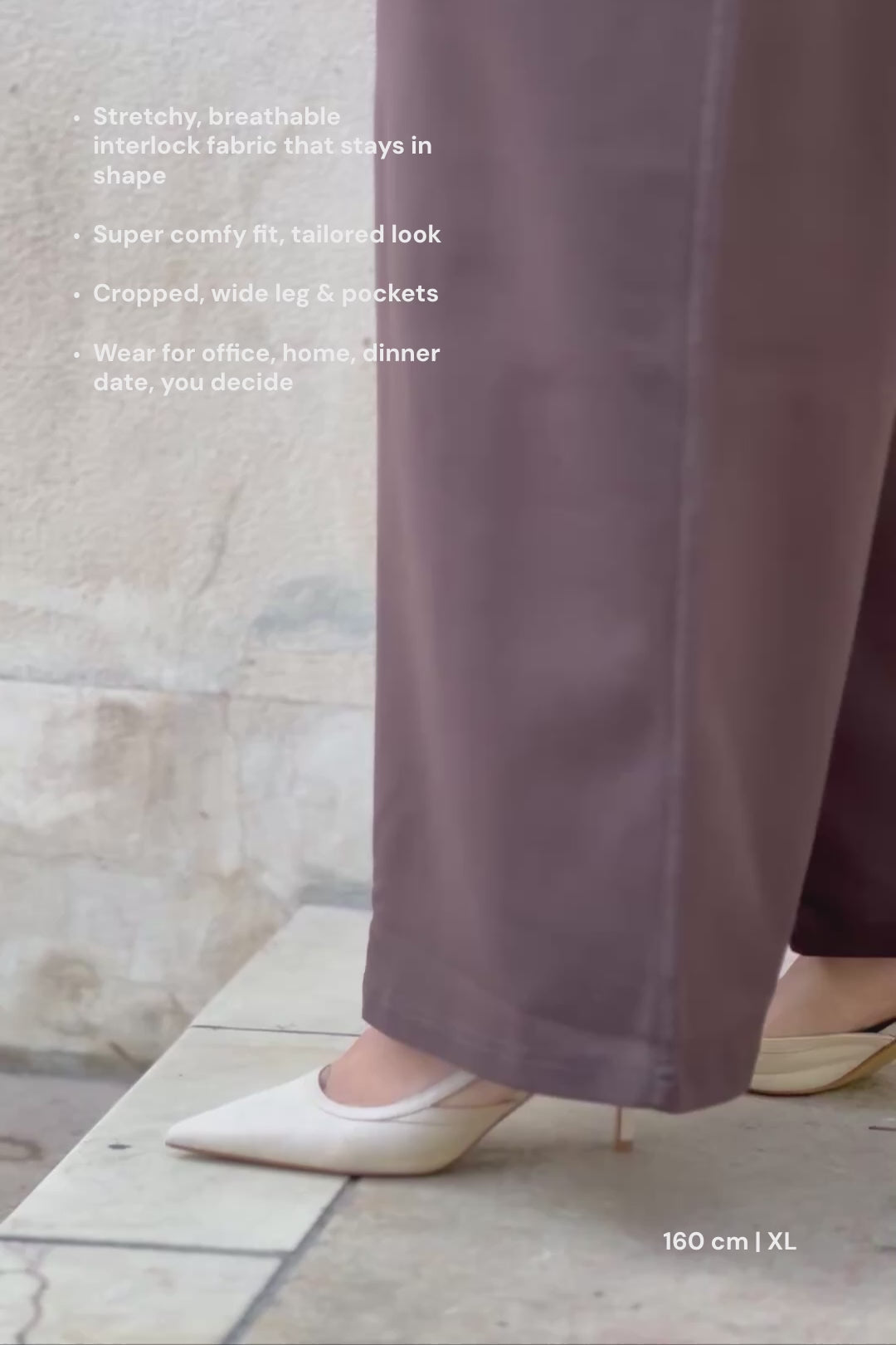 When you want cool pants that don't compromise on comfort, the Everyday Culottes are a sure choice. Made from thick and stretchy ponte roma interlock, the pants look sharp, but feel wonderfully soft on the skin. The pants have a wide elastic waist (5 cm high) and front pockets. The side seams have denim stitching, which gives the pants an extra sharp feel. The pants are dark brown in color.