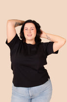 This sustainable women's t-shirt is designed to last year after year and is one of the most versatile pieces in your wardrobe. Pair this classic t-shirt with jeans for a casual look or with a skirt for a more stylish look. The t-shirt comes in black.