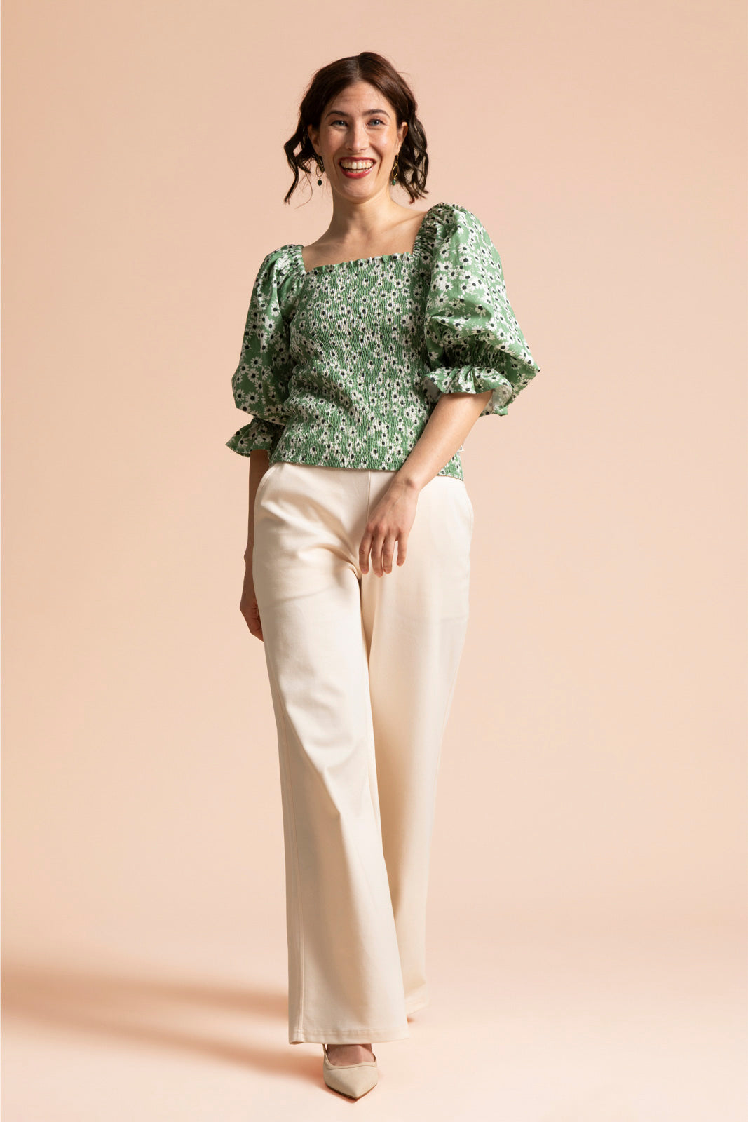 Smock Blouse is made of sturdy organic cotton poplin. The shirt's stylish details, such as a smocked hem, square neckline and volume sleeves, create a beautiful and well-groomed silhouette.