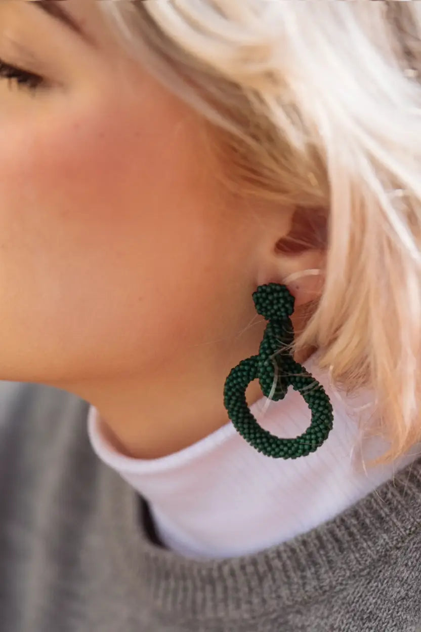 Gia earrings are striking and playful earrings handcrafted in Nepal, assembled from small glass beads. Despite their size, these super popular earrings are lightweight.