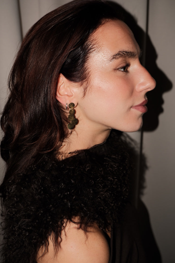 Kaikon's Lyric earrings are handcrafted in Nepal and hand forged from brass. The entire length of the jewelry is about 5 cm.