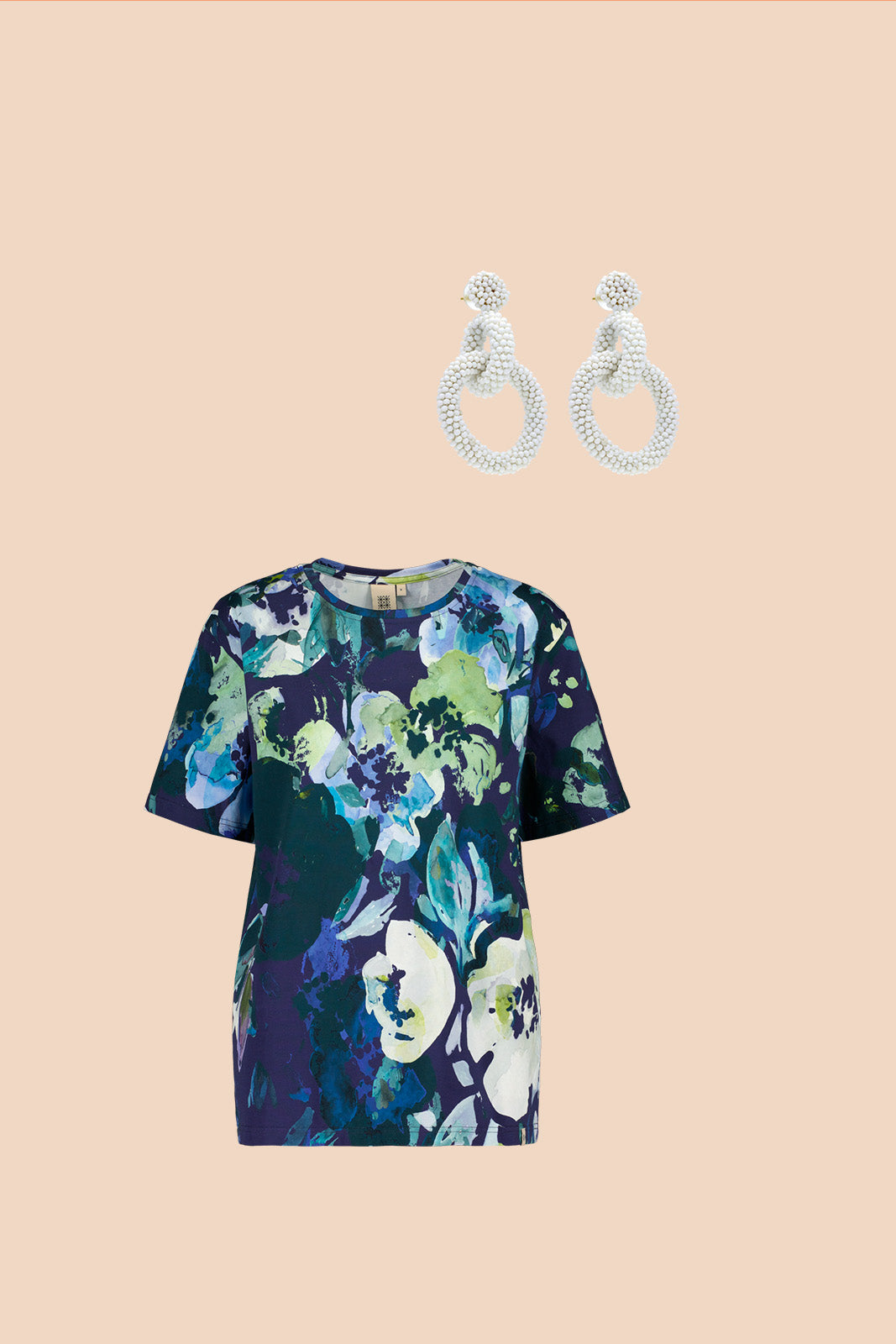 Blue Anemone Outfit, T-shirt & Gia Earrings, White