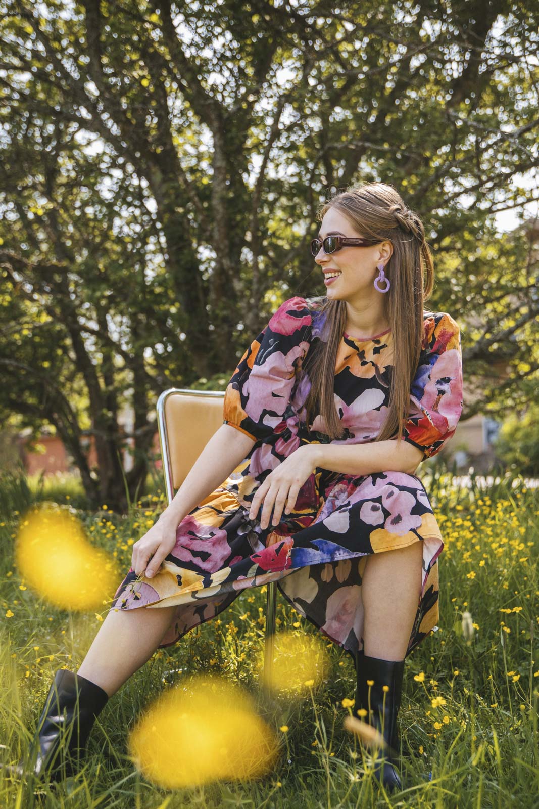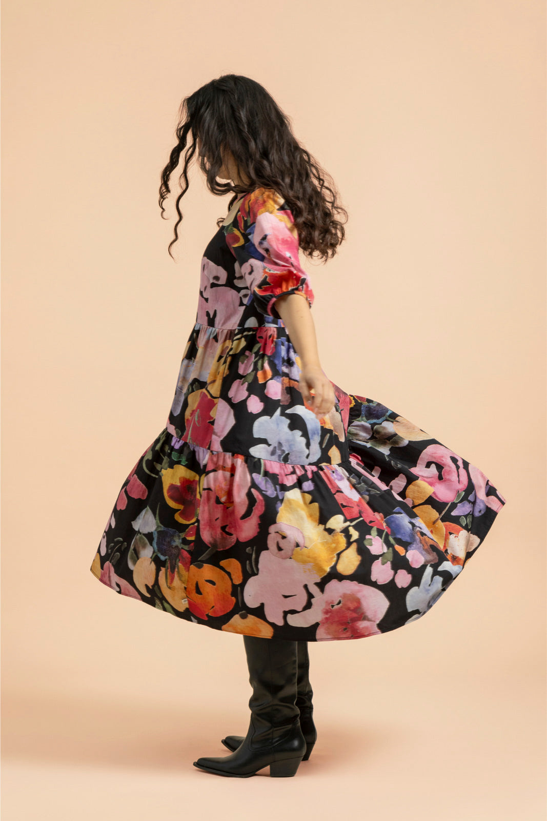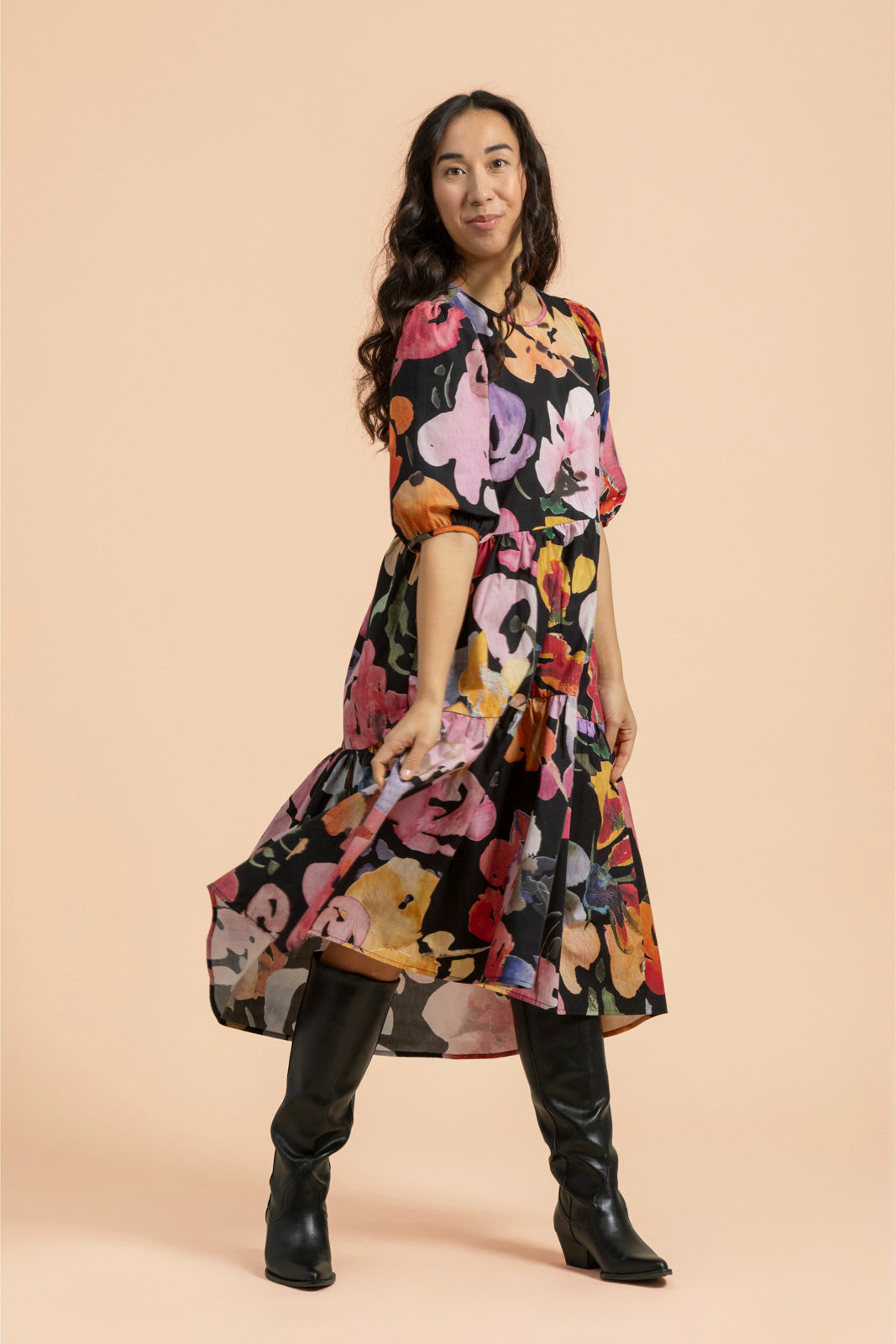 Style this high-quality women's dress to suit your style: with heels and a small bag for a party, or casually with sneakers and sandals for everyday life. The Wild Lea floral pattern combines a black base tone with large watercolor flowers to create a timeless and striking ensemble.
