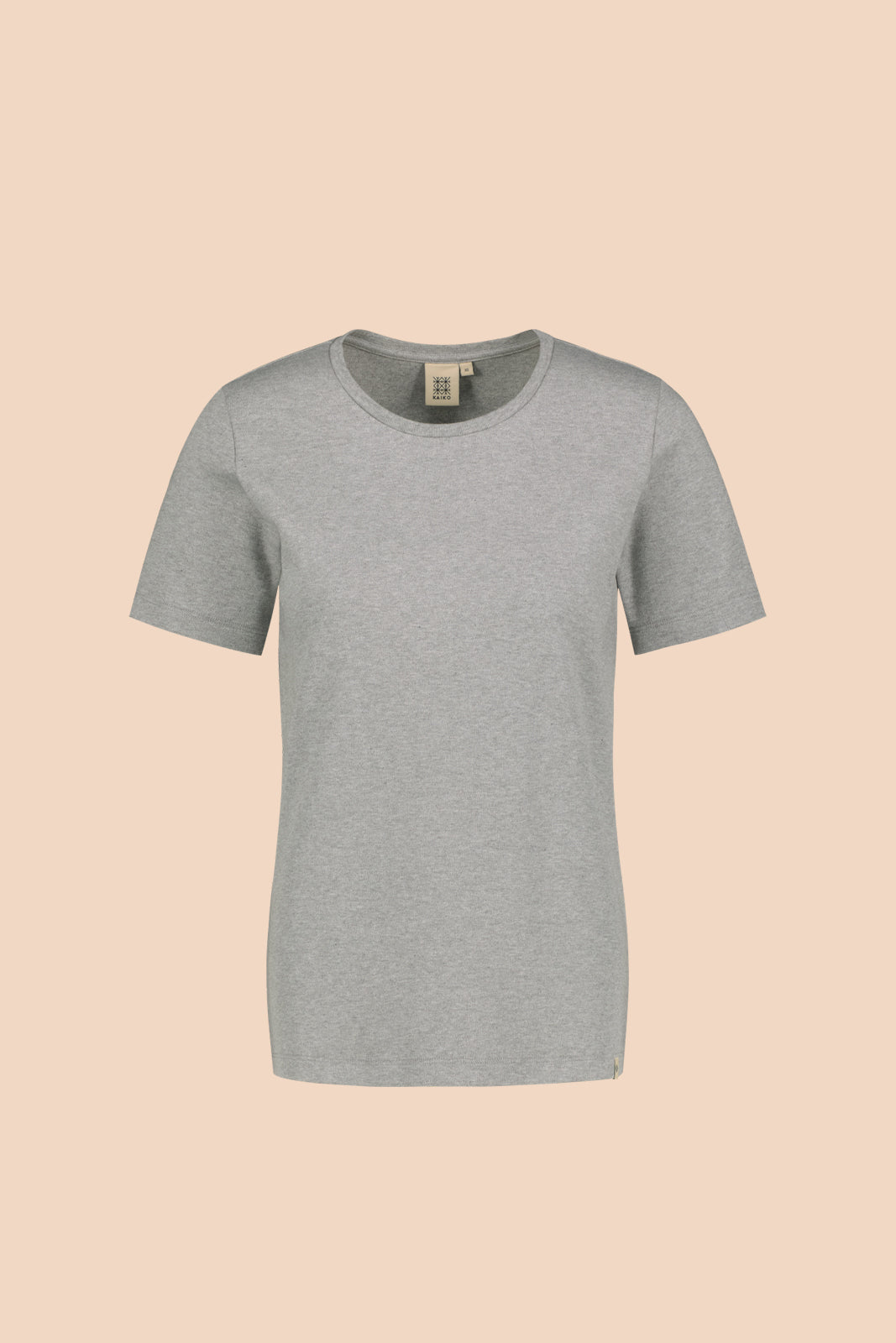 This sustainable women's t-shirt is designed to last year after year and is one of the most versatile pieces in your wardrobe. Pair the classic t-shirt with jeans for a casual look or with a skirt for a more stylish ensemble. The t-shirt comes in a light melange gray color.