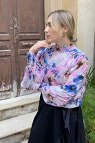 The elegant Puff Blouse is made of beautifully draped woven EcoVero™ viscose with a silky and soft feel. The Puff Blouse has large voluminous sleeves, and the cuffs are decorated with a beautiful smock ruching. The stand-up collar has stylish coated buttons and a small slit on the back. The pattern is Lilac Anemone, where large watercolor flowers sprawl on a pale lavender background.