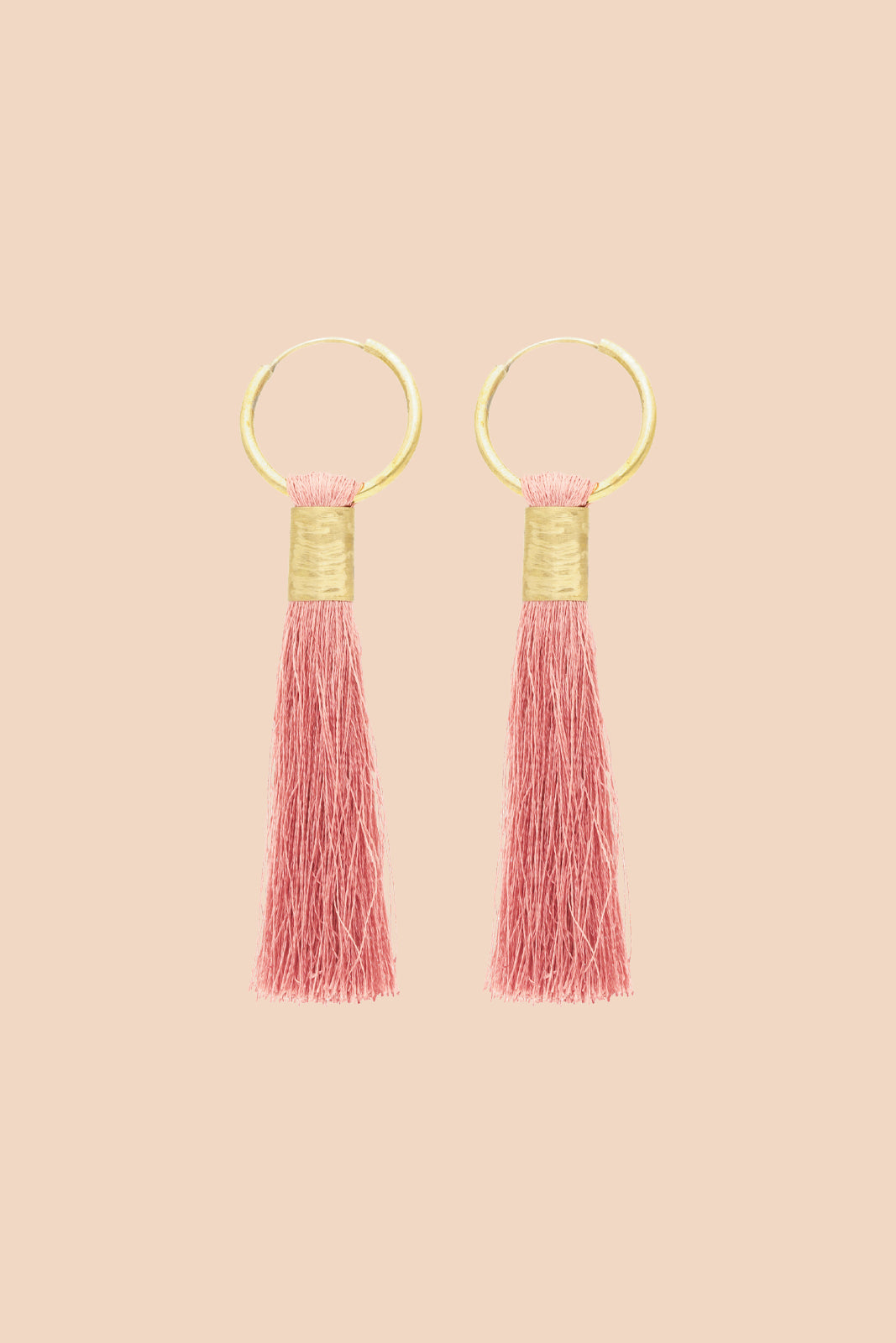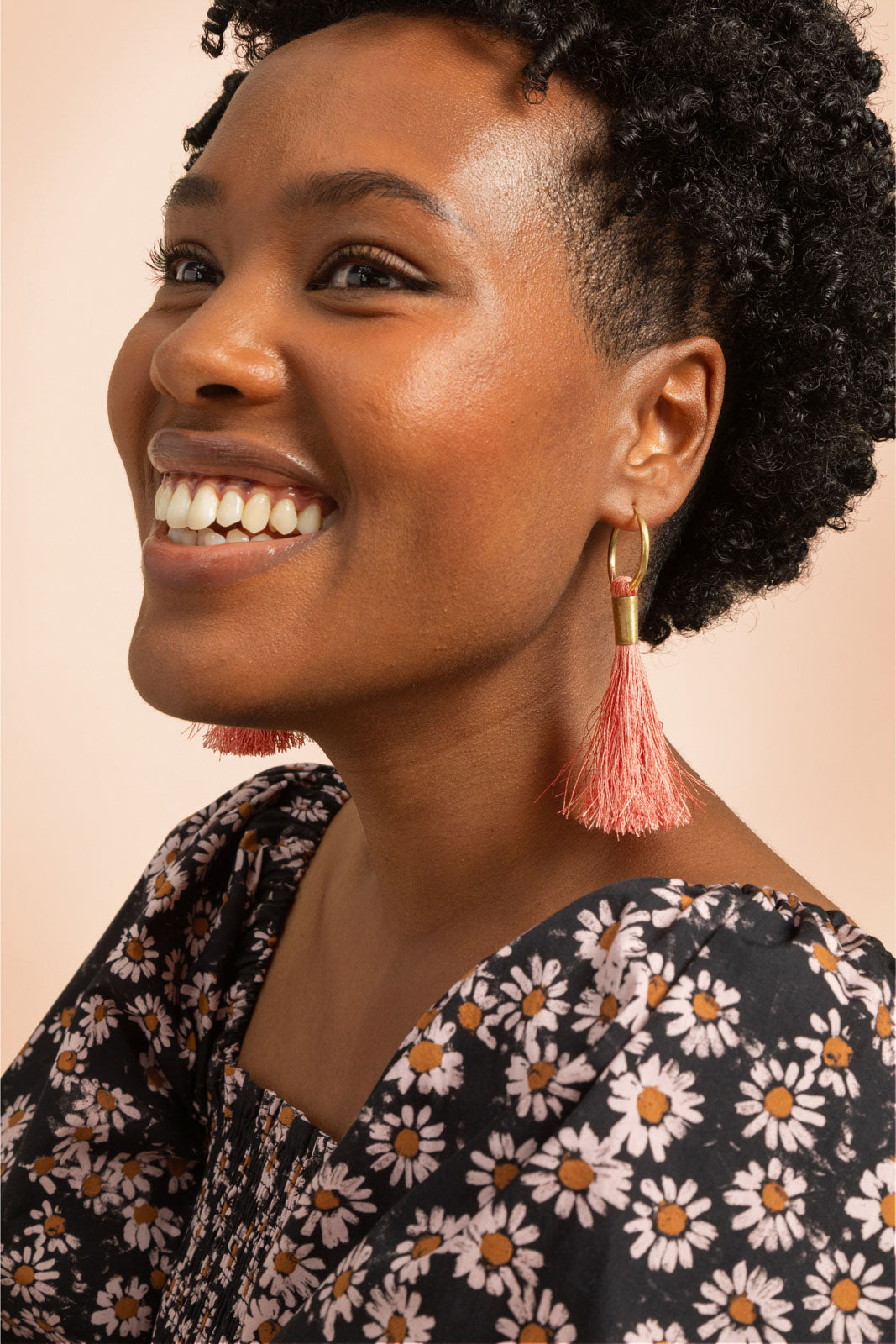 Beautiful Sumati earrings are handcrafted in Nepal. The earrings are made of silk and brass, with a durable stainless steel hoop. The total length of the jewelry is 10.5 cm.