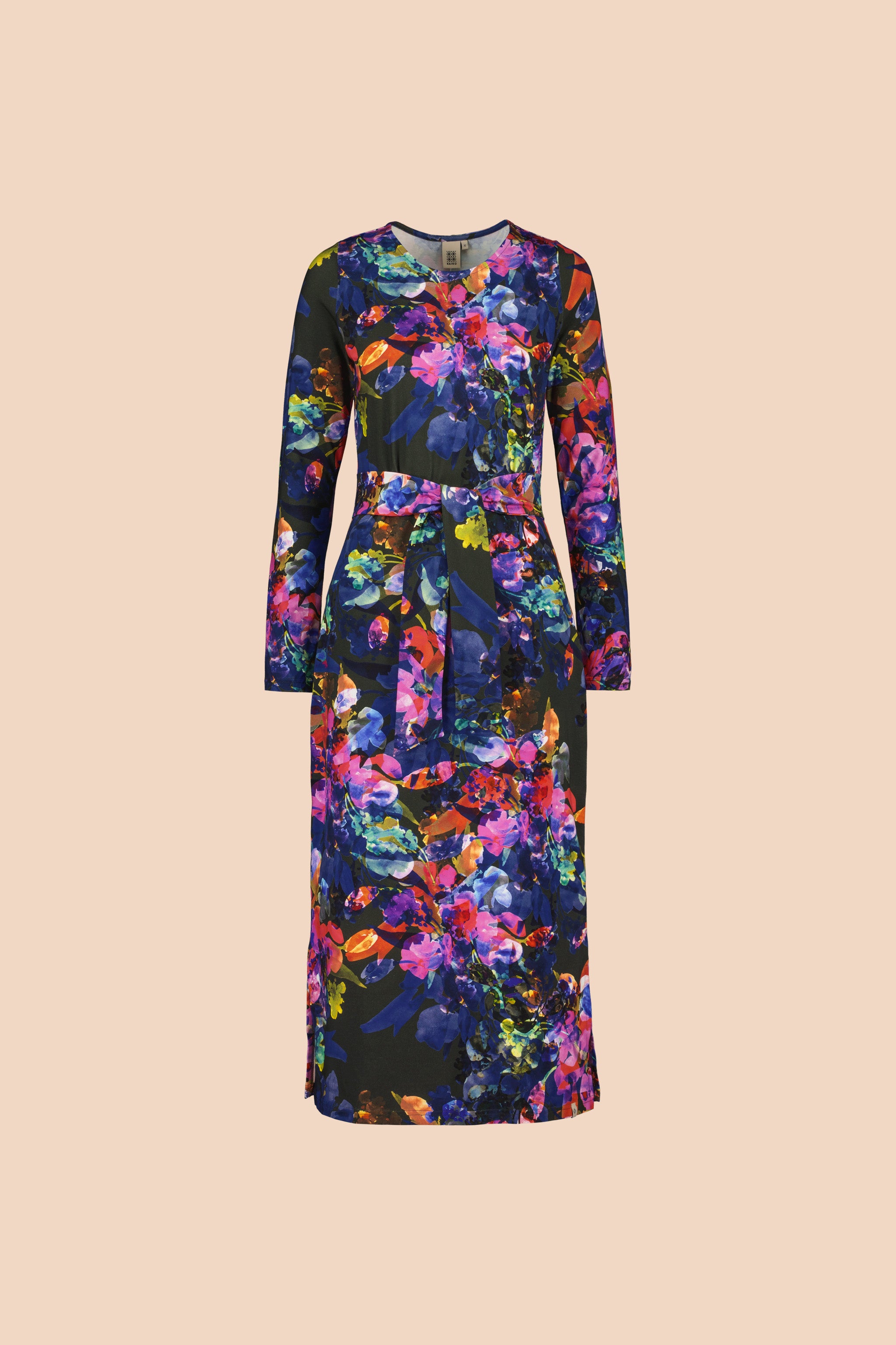 Made from soft organic cotton jersey, the Midi Belted Dress has a feminine and skin-tight design. The side seams of the dress have wide ribbons that accentuate the waist, which can be tied either in the front or back. The hem length is about calf-length, and there are 20 cm slits in the side seams. The dress has long sleeves. The Midi Belted Dress is easy to style for both everyday and festive occasions.