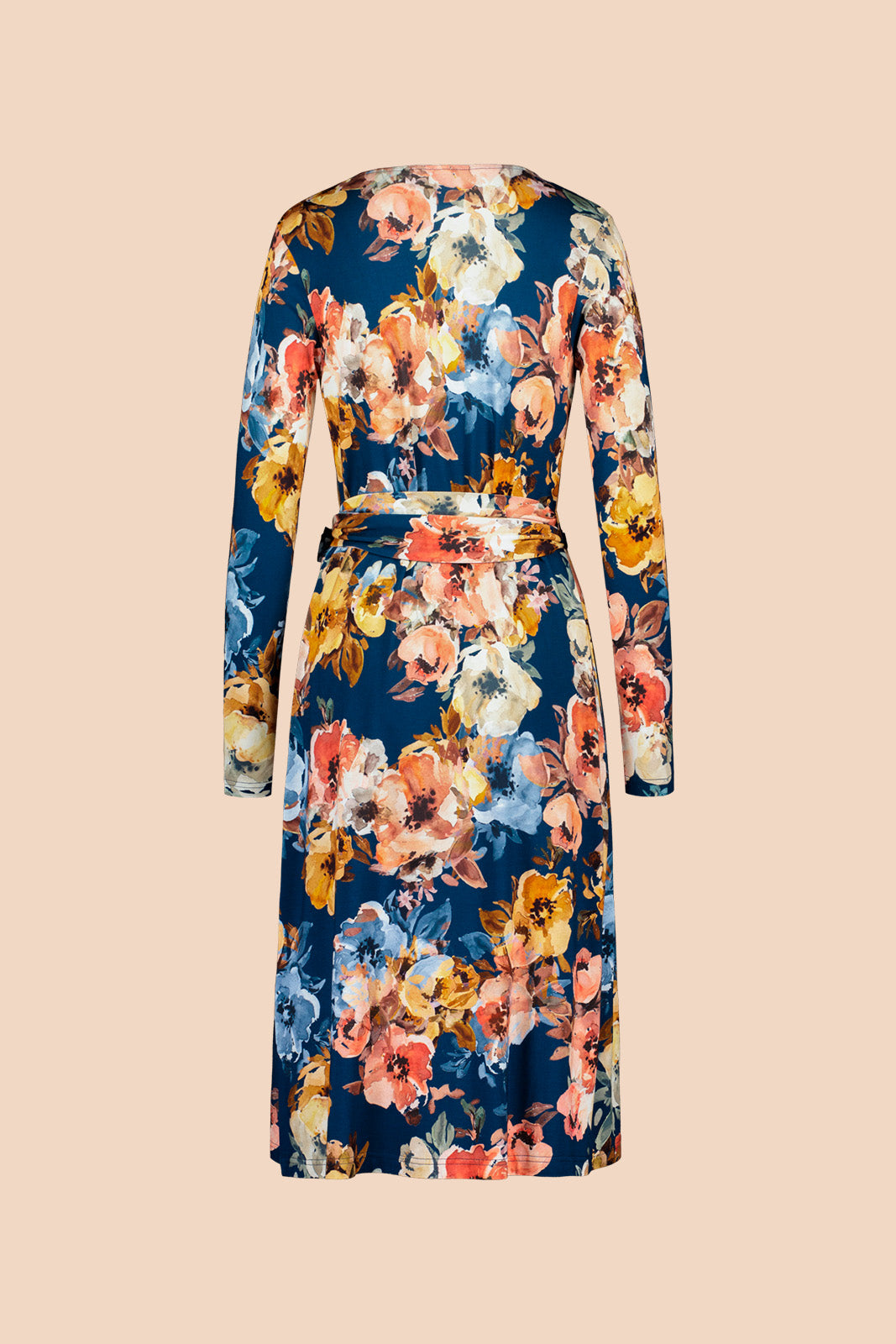 The striking Moss Rose floral print on a petrol blue base brings a fresh look to this timeless dress, making it the perfect choice for women who value responsible, high-quality clothing. This durable dress is designed and crafted to last for years to come.
