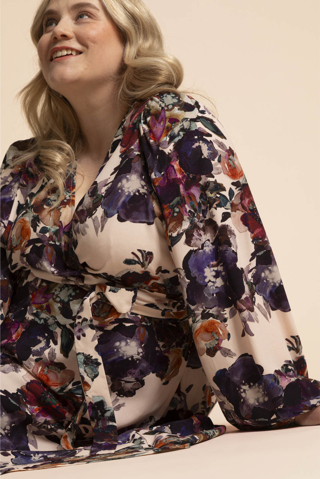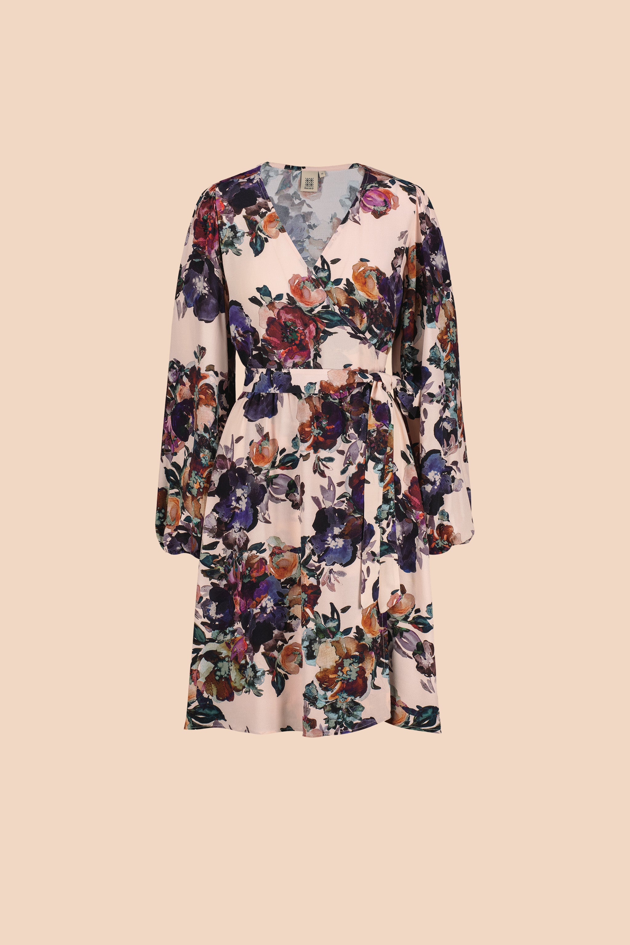 A versatile and striking dress that is perfect for both everyday wear and parties. The flattering wrap cut and adjustable waistband ensure a perfect fit for every body type. The wide full-length sleeves have gathered elastic cuffs, and the shoulder pleats create beautiful volume in the sleeves. The hem of the dress is approximately knee-length.