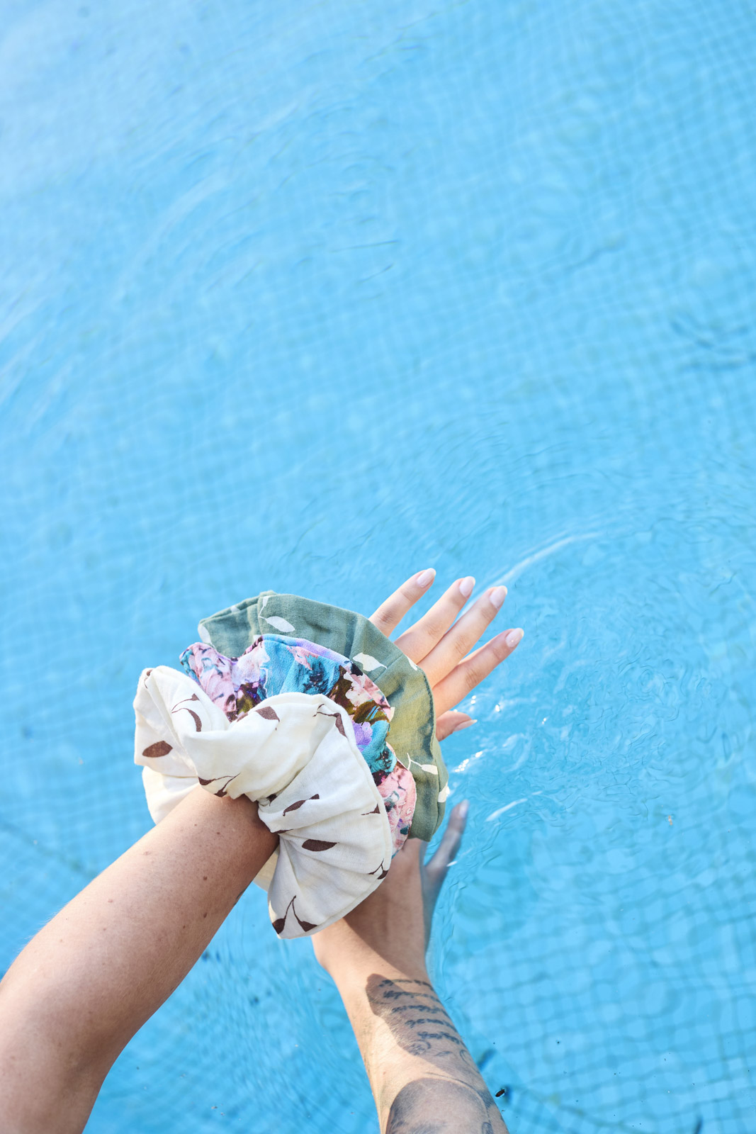 A large hair donut made of woven EcoVero™ crepe viscose adds a spectacular extra touch to your hairstyles. The giant donut features a striking watercolor work, Candy Aquarelle. The diameter of the donut is ~ 20 cm.