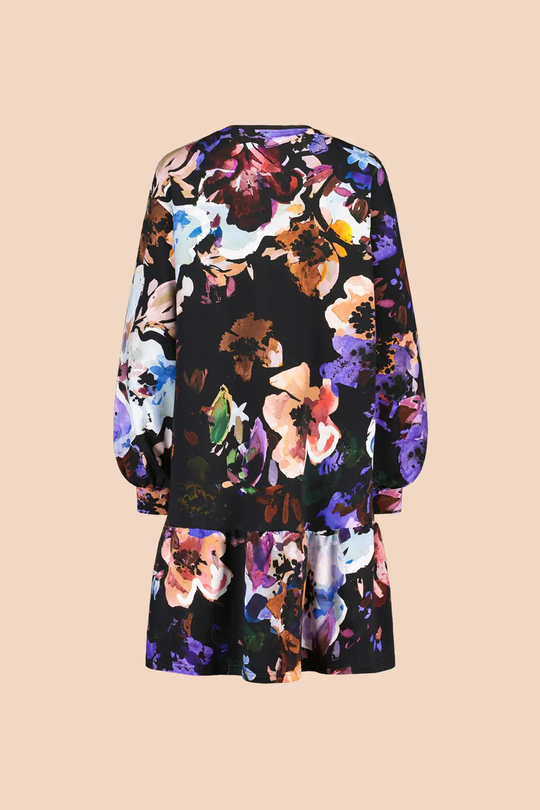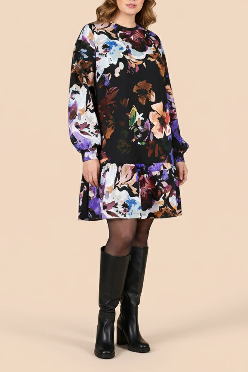 Ruffle Sweatshirt Dress, Black Anemone