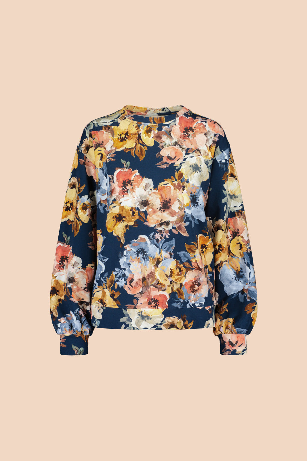 A comfortable top that is perfect for both everyday and leisure wear. The loose cut, full-length sleeves and a hem that reaches down to the hips make the long-sleeved shirt comfortable and practical. The print is Moss Rose with a petrol blue base.