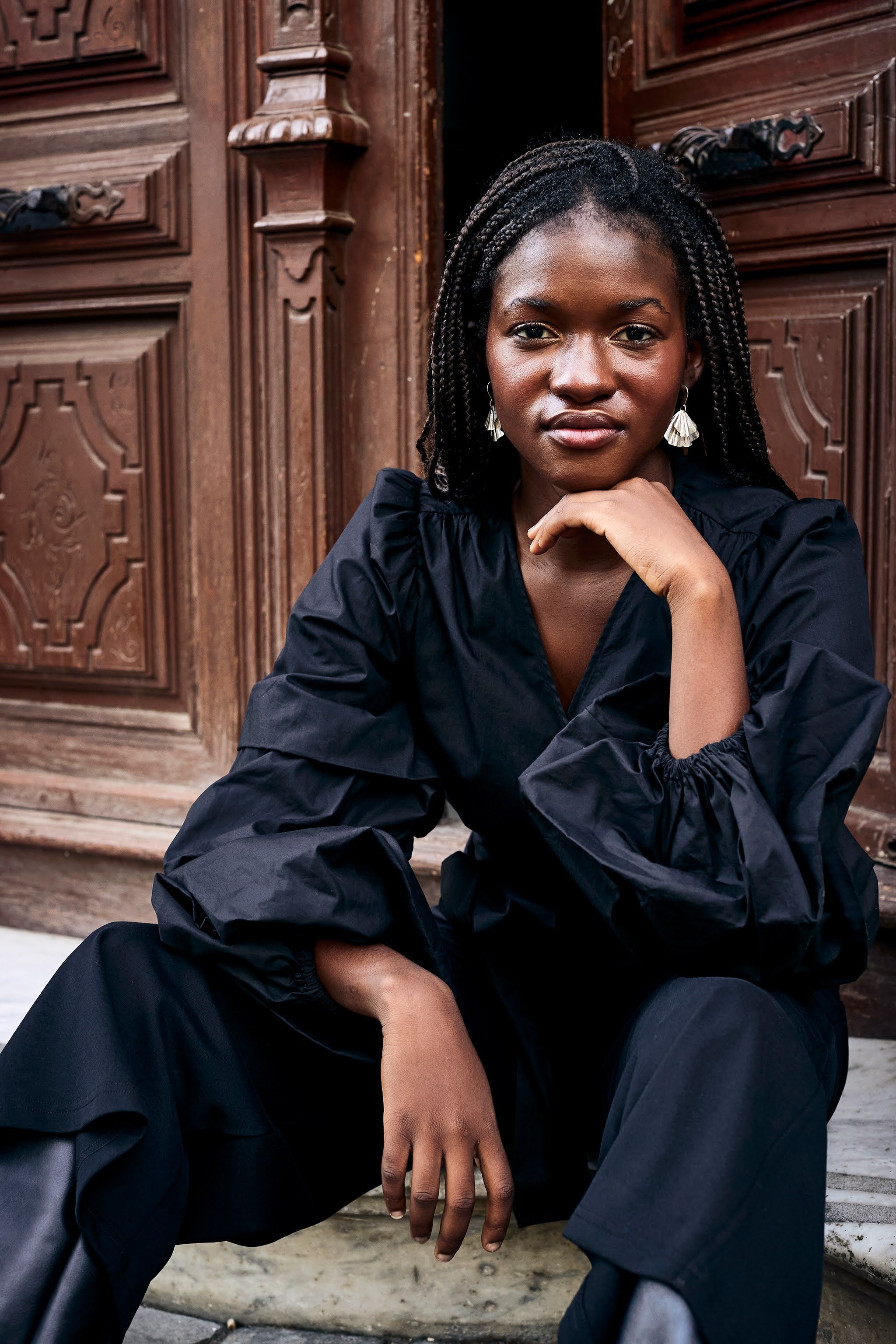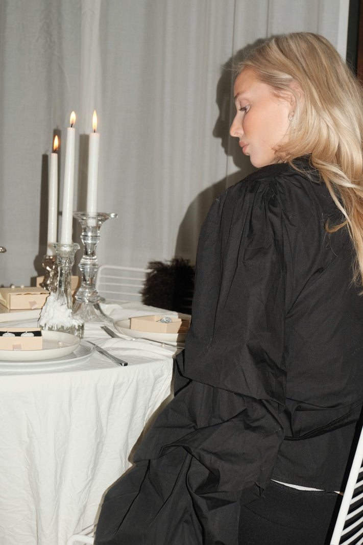 The striking Volume Sleeve Blouse is made of sturdy organic cotton poplin with a dense and smooth surface.