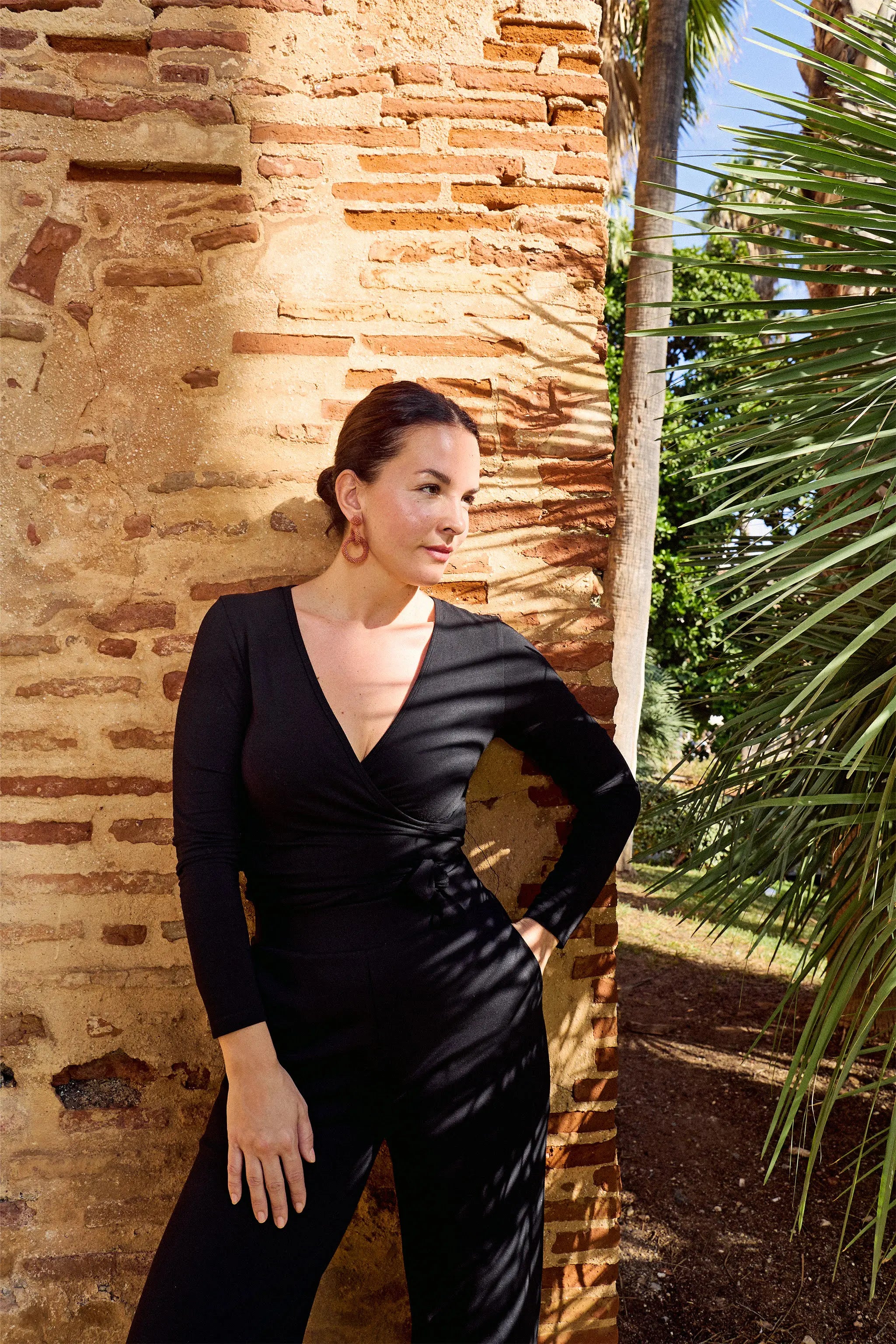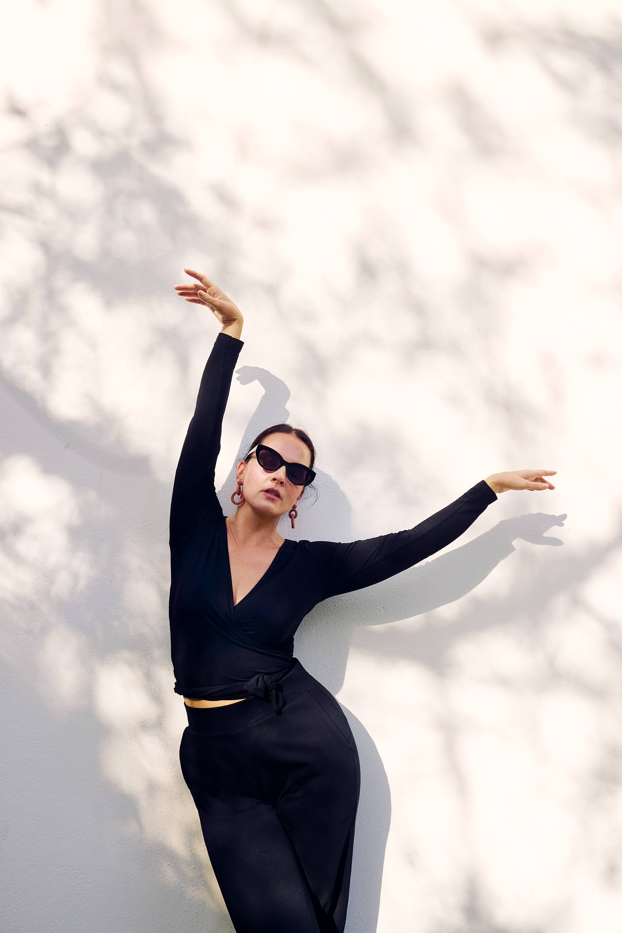 The black wrap top is made from a wonderfully soft Naia™ blend with a silky soft feel. The material feels cool against the skin, it breathes well and dries quickly.