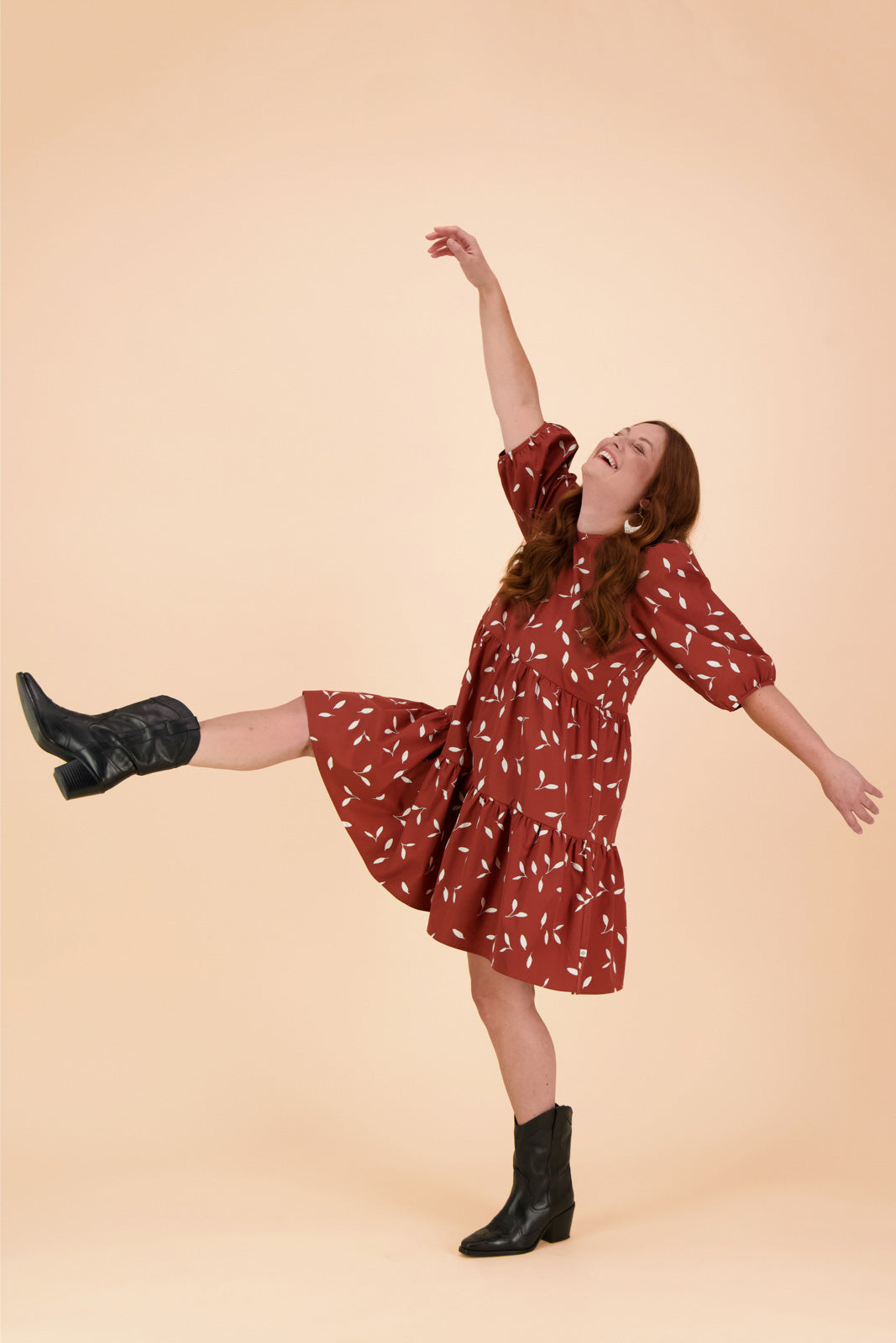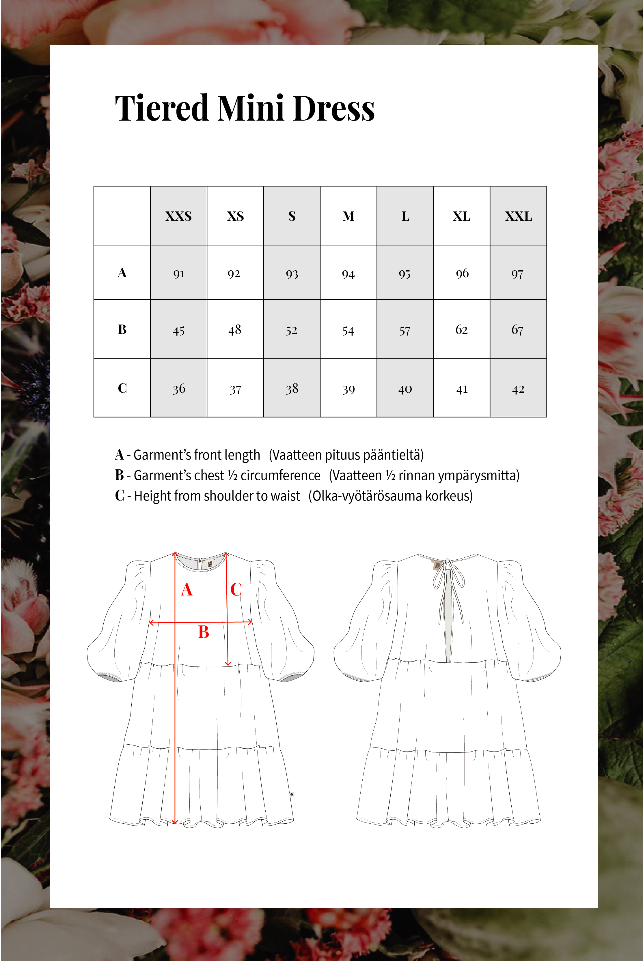 The Tiered Mini Dress is easy to style to suit your own style, and the dress works both on warmer days paired with bare legs and on cooler days as a pair of tights and boots layered with, for example, a polo shirt.