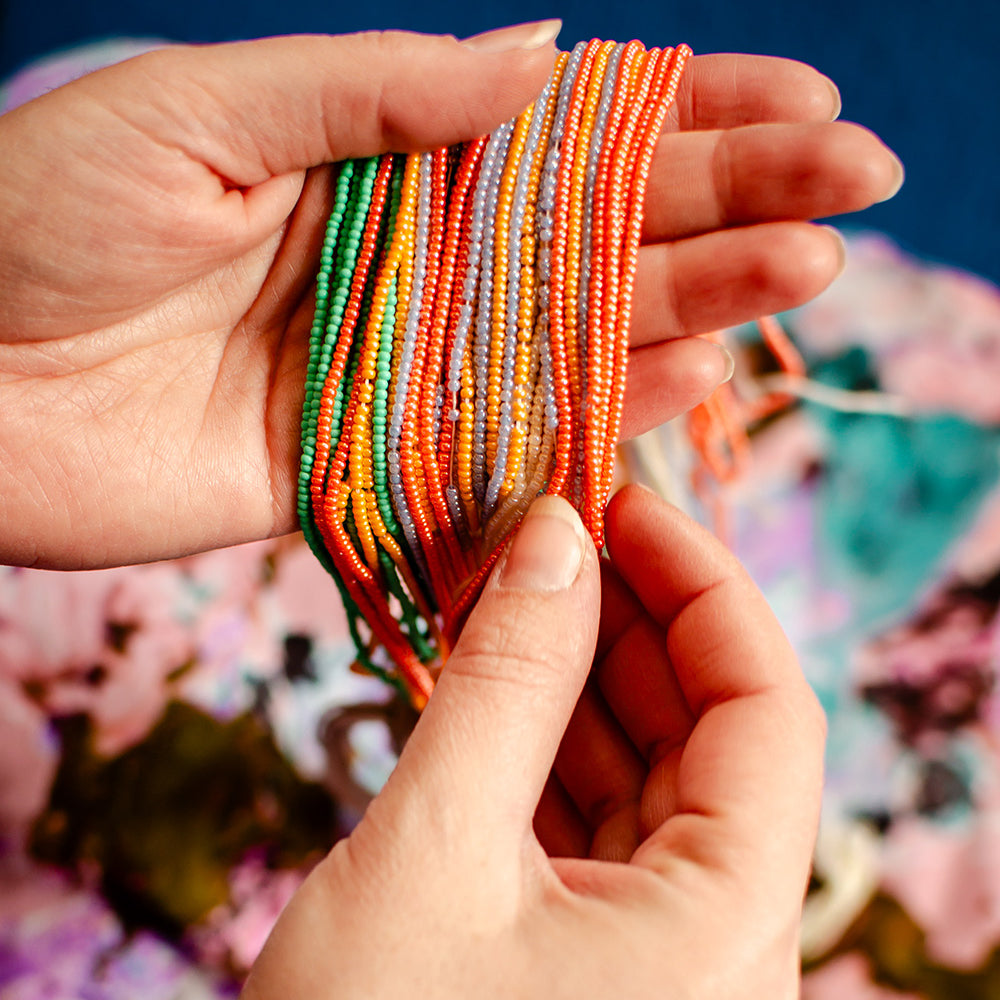 Anjila trains and supports the jewelry artisans in their work and organizes the transportation of materials and finished jewelry. Many of the jewelry artisans make their jewelry at home.