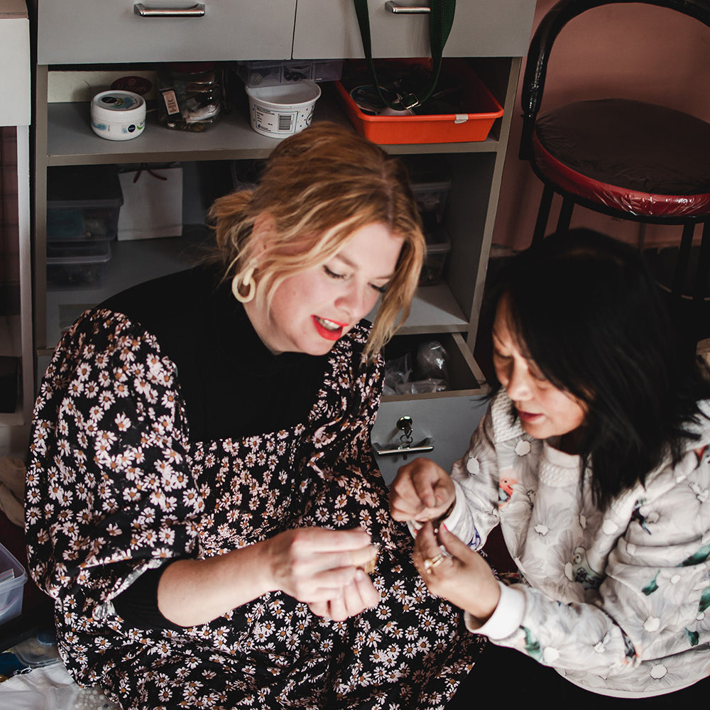 Kaiko's jewelry is created in Nepal by skilled artisans. Our silversmith Jai ensures the high-quality finishing, while Anjila and Indu provide work for local women through their own company, Aroma Beads. The jewelry design takes into account the everyday lives of women: the work must be flexible so that it can be done from home with easily available materials. For many women, this means the opportunity to earn a living while taking care of their families – children, the elderly and everyday household chores.