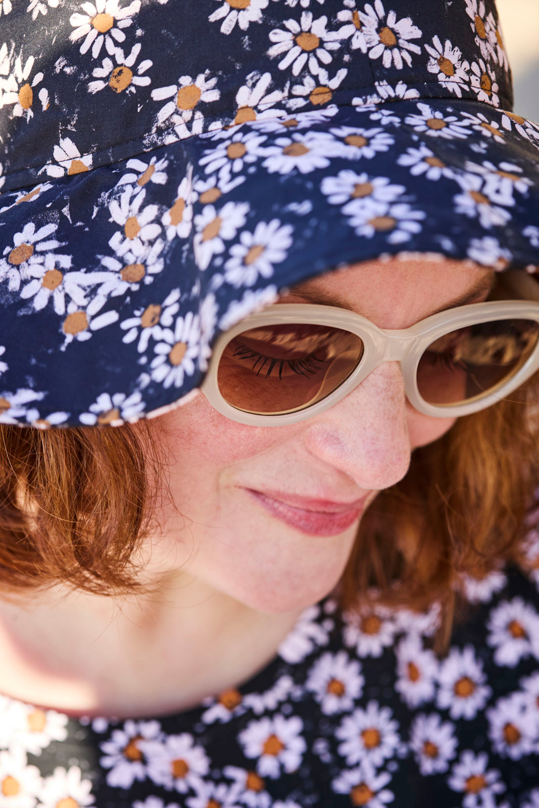 The stylish Boho Sun Hat is made of 100% organic cotton. The wide-brimmed Boho Sun Hat has a casual bohemian design. The timeless Daisy pattern features daisies sprawling on a black background.
