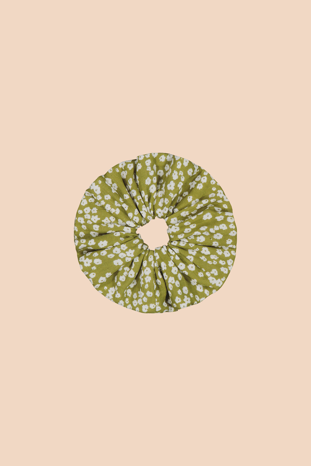 Extra Large Scrunchie is made of organic cotton muslin. The donut features a serene Flora Olive print. The giant donut adds a beautiful extra touch to a ponytail or bun. The donut diameter is ~20 cm.