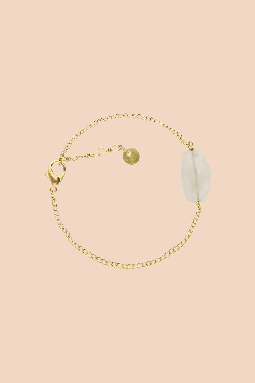 A beautiful and stylish bracelet with a rainbow moonstone stone and brass metal parts. The clasp chain offers adjustment for the length of the bracelet. Kaikon Fatima bracelet is handmade in Nepal. The metal parts of the earrings are brass and nickel-free, but they can irritate very sensitive skin.