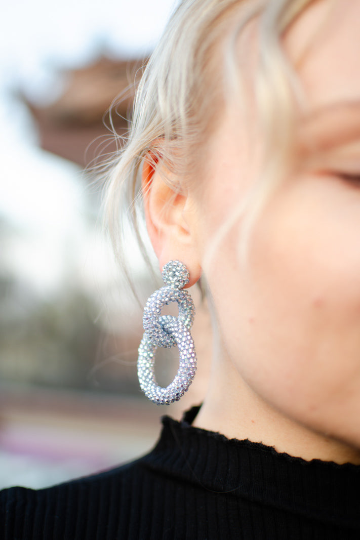 The earrings are made from individual glass beads that are braided together. One pair of Gia earrings contains up to 1500 glass beads! Up to 5 jewelers participate in the production of the different parts of the jewelry and it takes about 2 hours to make one pair of earrings. Read more about jewelry making here .