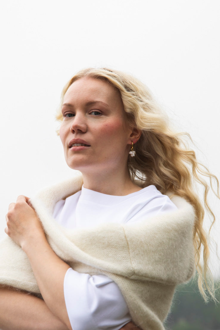 Kaiko's Sona earrings are striking yet lightweight pearl earrings, featuring a group of natural pearls attached to a gold-tone steel hoop. The organic shapes of the pearls bring a lively and unique look to the jewelry. The material is stainless steel and natural pearls, which make the jewelry durable and timeless. The total length of the jewelry is approximately 3.5 cm.