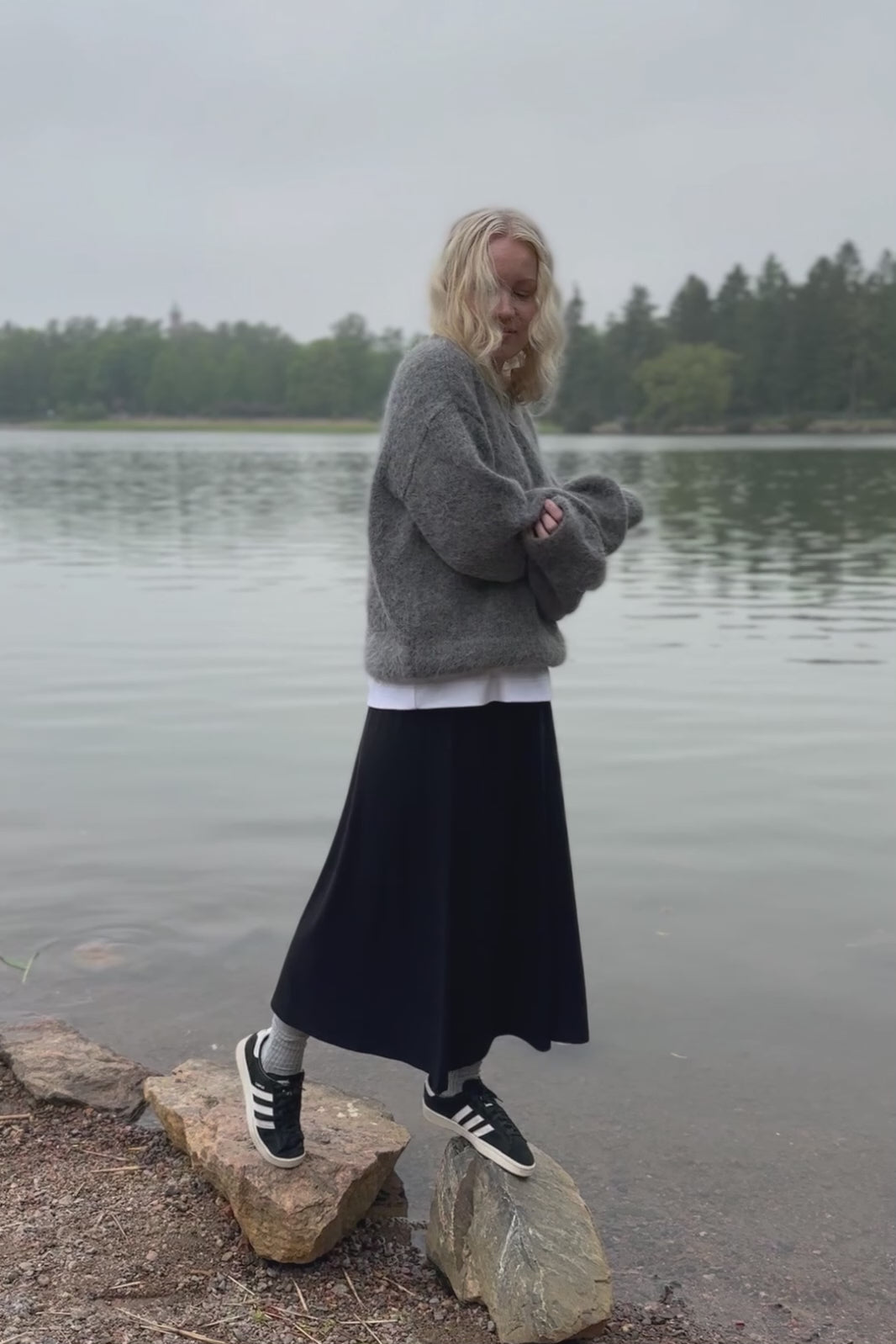 The high-quality midi skirt falls beautifully and has an elastic waist that makes the skirt wonderfully comfortable to wear. Practical side seam pockets increase comfort.