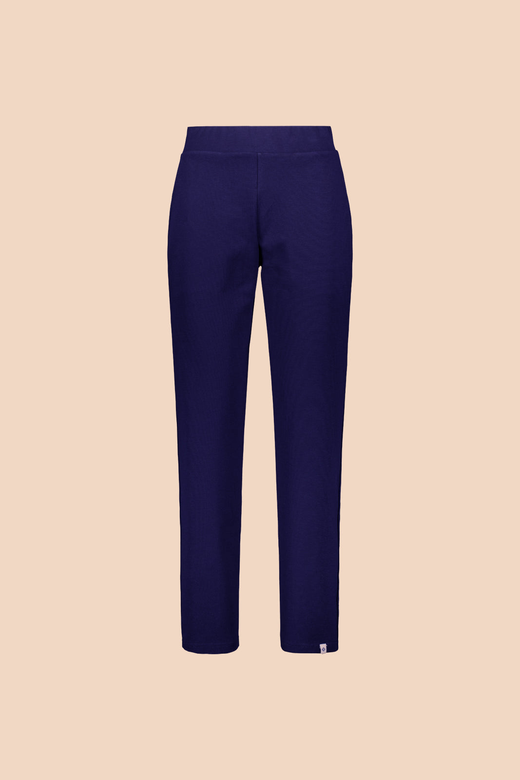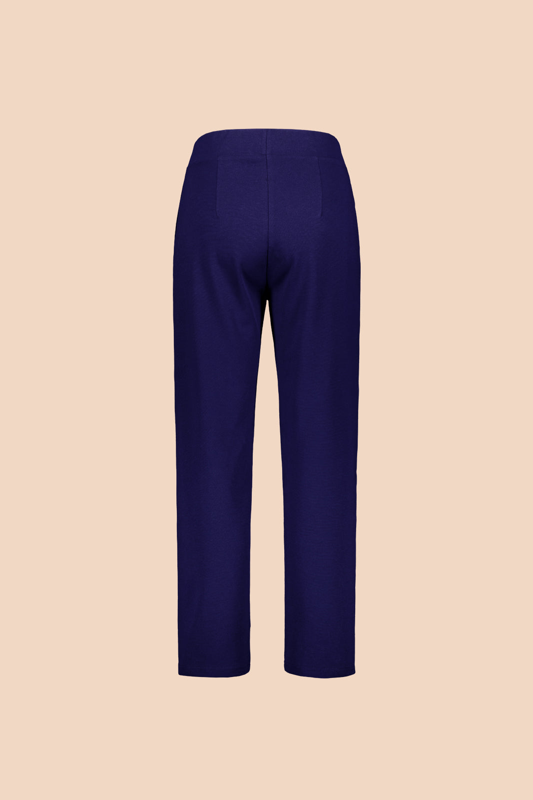 When you want cool pants that don't compromise on comfort, Comfy Slacks are a sure choice. Made from thick and stretchy ponte roma interlock knit, the pants follow the spirit of straight pants, but feel wonderfully soft on the body. The pants have a wide elastic waist (5 cm high) and front pockets. Shaped pleats at the back ensure a good fit. Denim stitching runs along the side seams, which gives the pants an extra-sharp feel. Classic dark blue color.