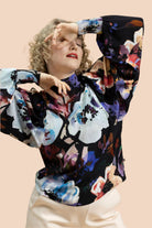 The elegant Puff Blouse is made of beautifully draped woven EcoVero™ viscose with a silky and soft feel. The Puff Blouse has large voluminous sleeves, and the cuffs are decorated with a beautiful smock ruching. The stand-up collar has stylish coated buttons and a small slit on the back. Loved as a pattern, Black Anemone, where large watercolor flowers sprawl on a black background.