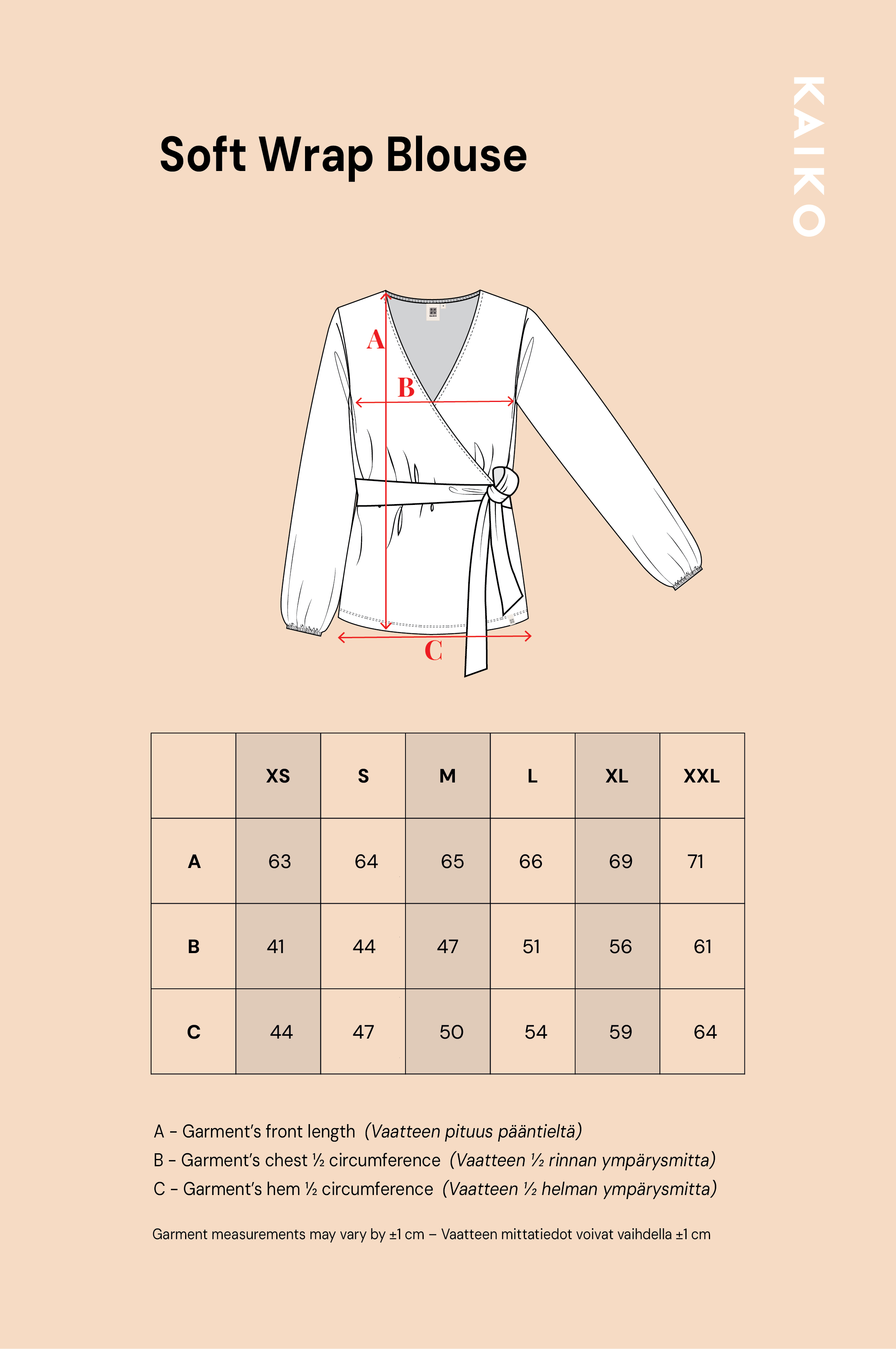 The Soft Wrap Blouse is made of soft organic cotton tricot. The shirt has an easily adjustable wrap cut that accentuates the waist, and the waist straps allow you to adjust the fit to your liking. The wrap shirt has full-length, loose sleeves, and the cuffs are gathered with elastic. The hem measures around the lower hips. The shade is classic black.