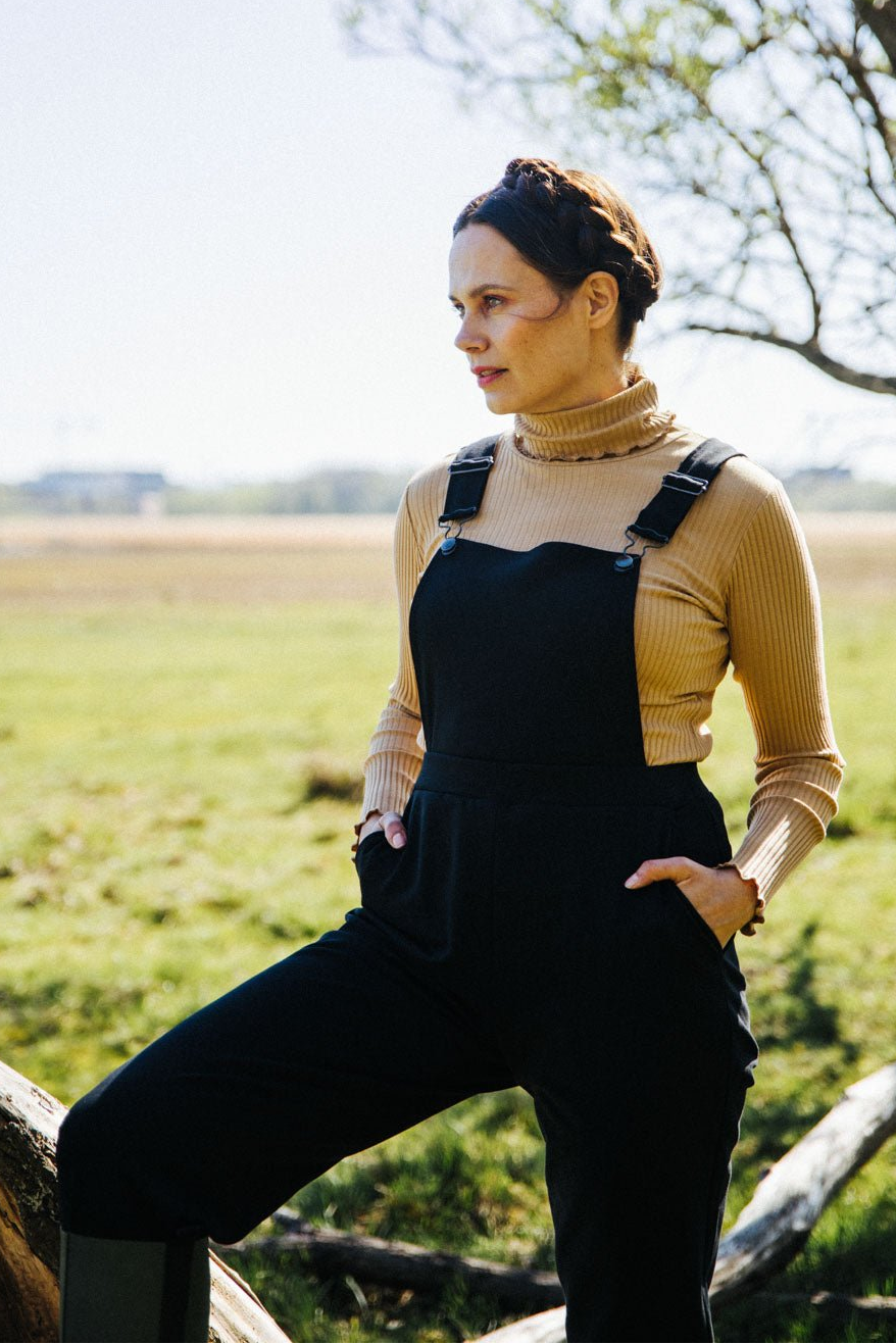 This top-rated jumpsuit is inspired by our popular Everyday Culottes and Comfy Slacks. Straight-leg dungarees with adjustable straps and front pockets. Form pleats at the back guarantee a good fit. The shade is classic black.