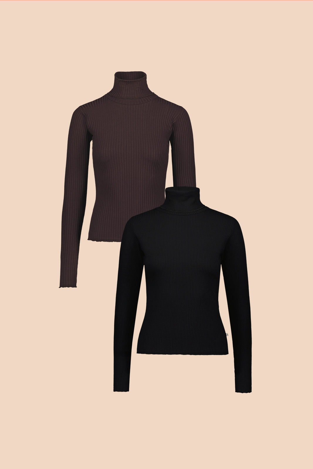 Rib Rollneck double pack, Black & Chocolate