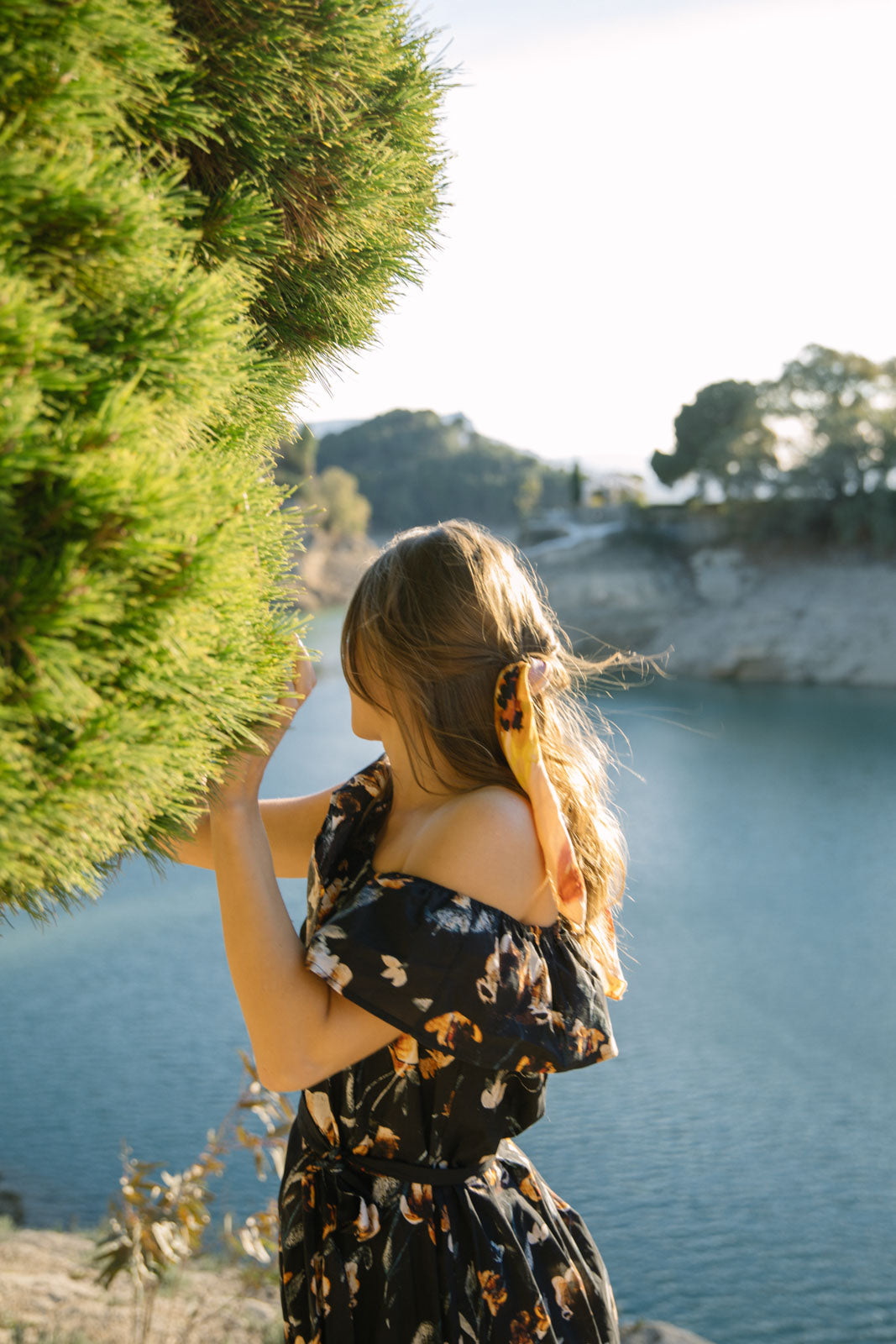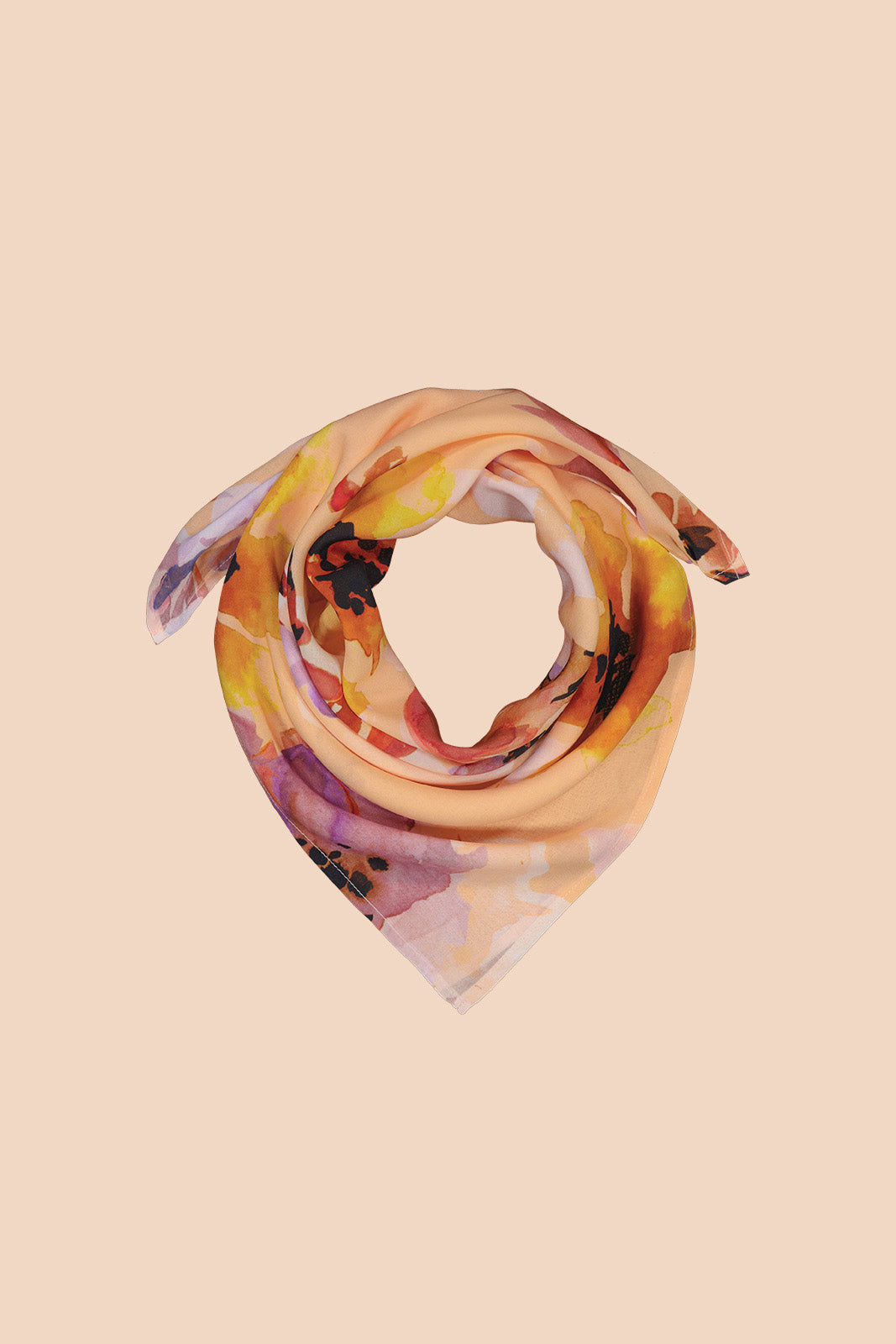 Complete your outfit with the versatile Square Scarf: wrap it around your neck, in your hair, on your head or tie it to decorate your bag. The pattern is Peach Anemone, where large watercolor flowers sprawl on a peachy background.