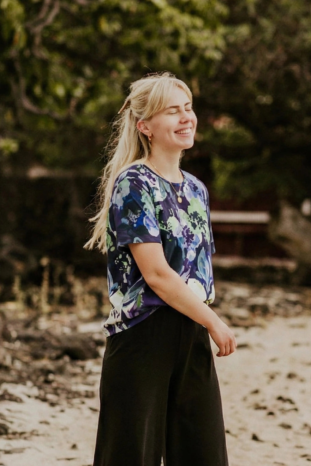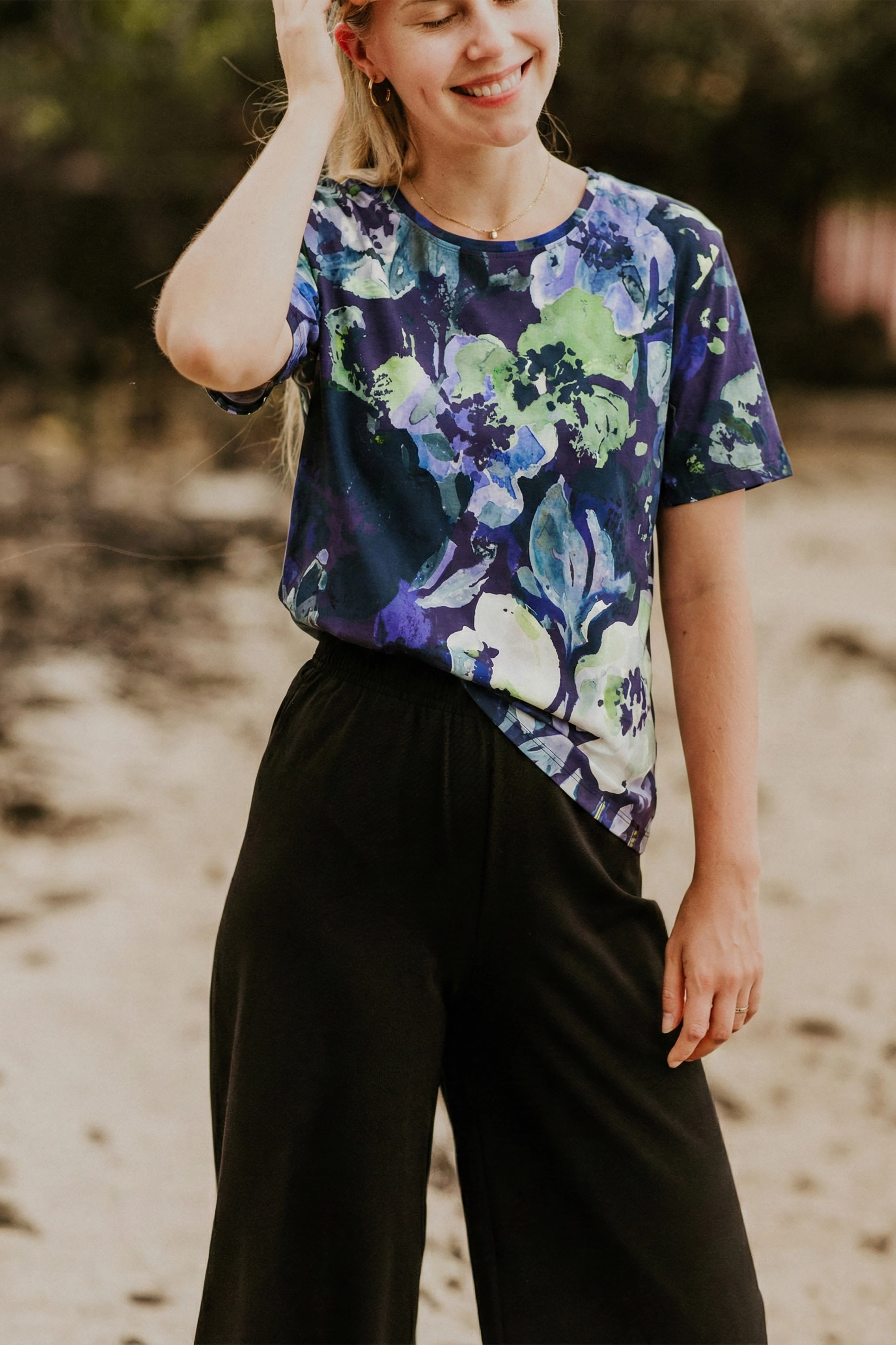 Note! The length of the T-shirt is slightly longer compared to our previous patterned T-shirts, which were shorter and crop-style. See the measurement chart (last picture) for more detailed lengths.